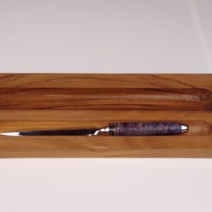 The wood used for this letter opener is Blue Box Alder Burl from North America.
